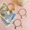 Imagina el amanecer perfecto con la luna sobresaliendo por encima de la aurora y el alba, antes del amanecer. Estas argollas Menguante son tu nuevo accesorio favorito para brillar. Hechas de acero quirúrgico hipoalergénico y disponibles en dorado y plateado. Medidas aproximadas de 45 mm.