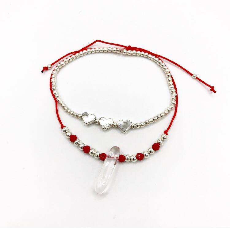 Pack Pulsera Proteccion Cuarzo Hilo rojo Y Corazones